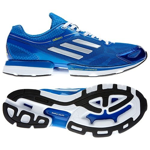 Get moving in the lightweight adizero™ Rush shoes by adidas. These featherweight, dynamic men's running shoes are just 7.5 ounces of high-mileage style, with adiPRENE®+ support in the forefoot, a light synthetic upper and a thin rubber outsole for a close
